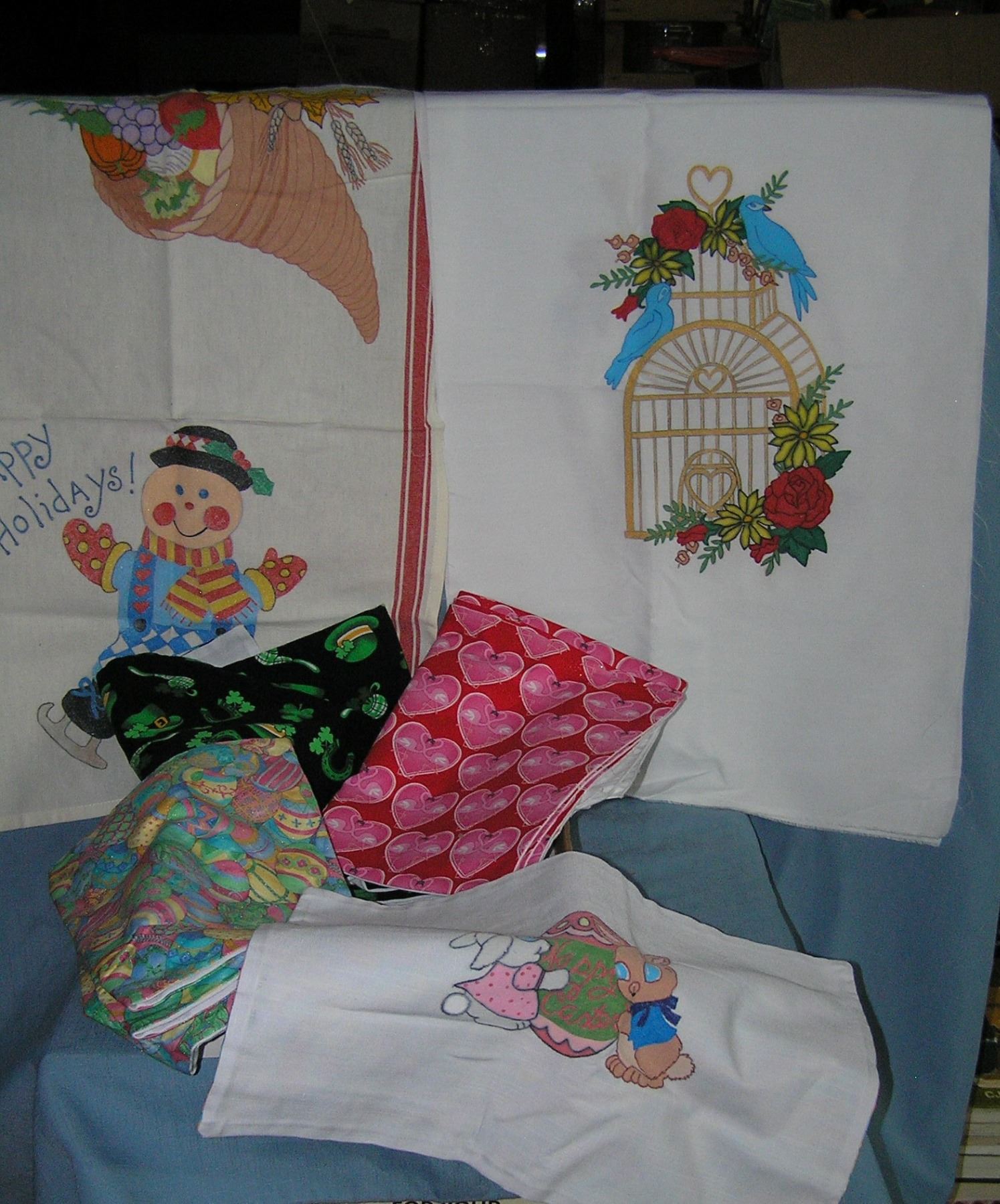 Nice box full of holiday linens includes Christmas, Thanksgiving, Saint Patricks day, Easter and Valentines day est. value $50.00-$75.00