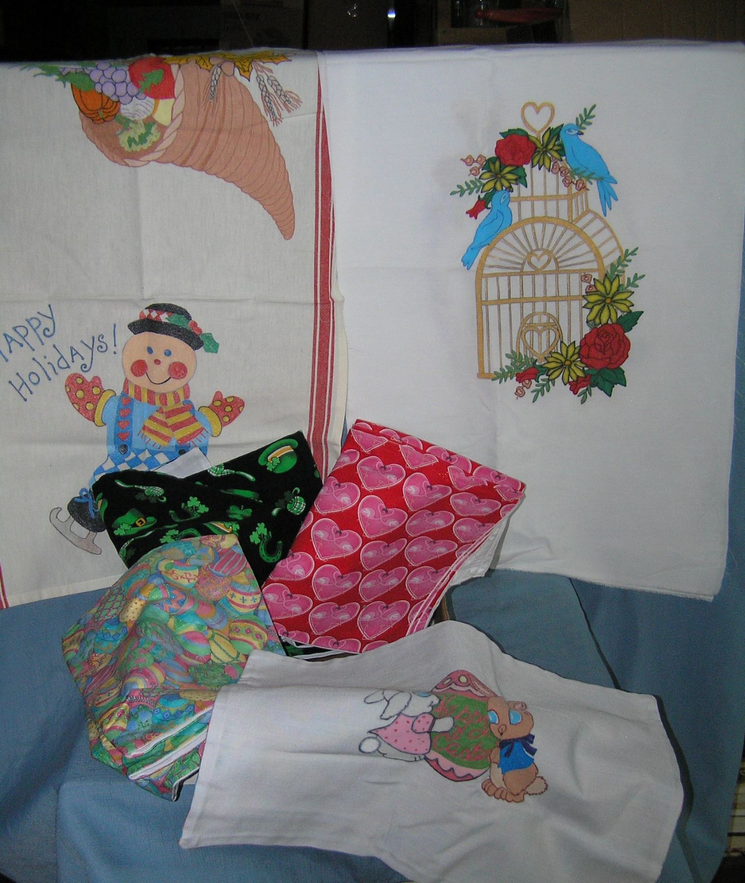 Nice box full of holiday linens includes Christmas, Thanksgiving, Saint Patricks day, Easter and Valentines day est. value $50.00-$75.00