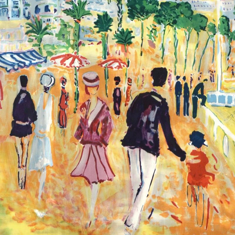 "Nice" is a limited edition lithograph on paper by Jean Claude Picot, numbered and hand signed by the artist! Measures approx. 22" x 30" (border), 16" x 21" (image).