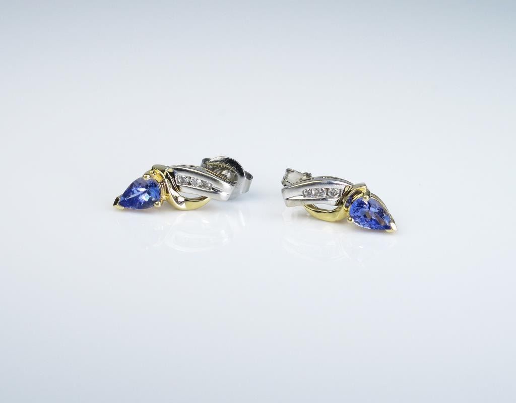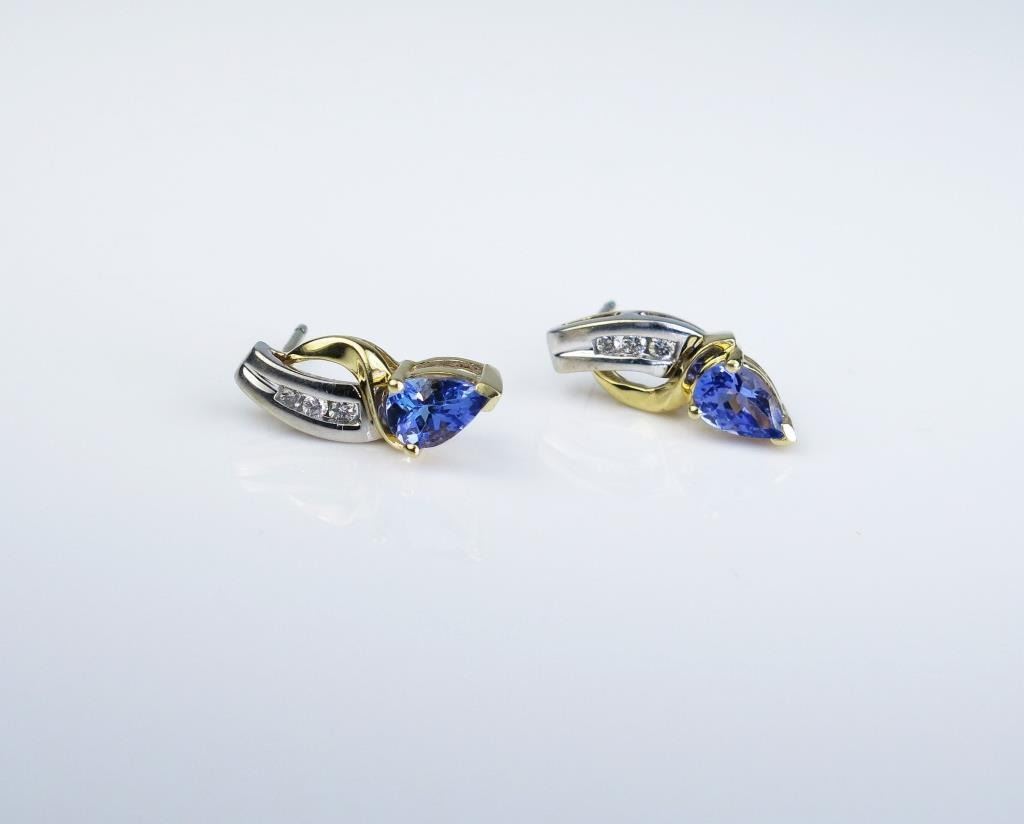 Nice ladies earrings set with fine Tanzanites and channel set diamonds set in 14 karat two-tone gold. Estimates $500-$800
