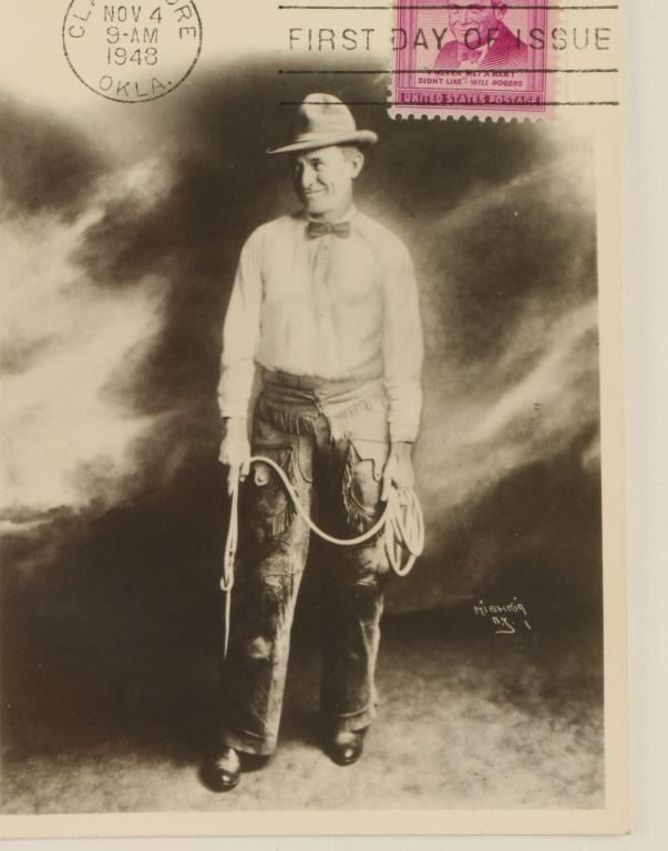 Nice lot of photos, negatives, brochures, etc. pertaining mostly to early Western themes. The 6 negatives are mostly related to John Brown’s sons, Owen and Jason at their cabin on Brown’s trail and nearby Brown’s grade; there is a desert scenepencil sketch by Ostrander, a 1948 First Day of Issue 3 cent stamp commemorating Will Rogers, sent from Claremore, Okla.; a 1926 small booklet on “Theodore Roosevelt, The Man of Action”; a 1913 August Flower and German Syrup Almanac; a color“The Round-Up” Cigar Box label for Celestino Costello & Co. cigars; an envelope from the Irma Hotel in Cody, Wyoming; a couple later postcards of Charlie Russell prints and a grouping of 8 small photos of cowboys, cowgirls, Rodeo eventsand a group of Indians in full dress. The negatives are in fine appearing condition and can likely produce prints for viewing by the successful bidder on this lot. Est.: $150-$300.