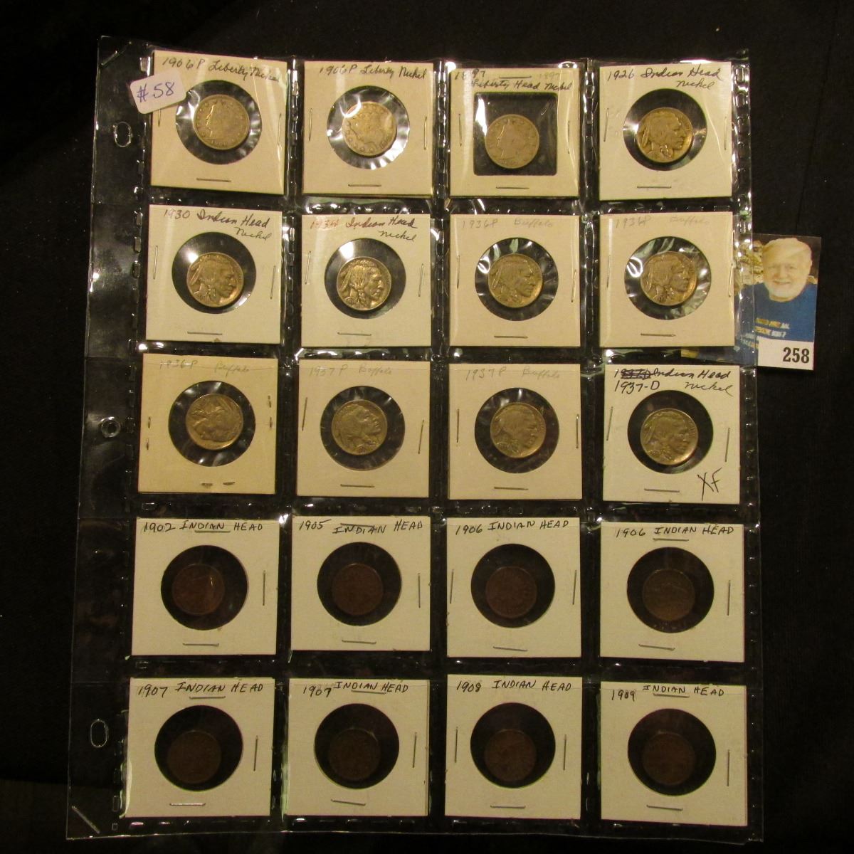 Nice mixed grouping, 3 Liberty Nickels, 2-1906, 1-1897  G, 9 Buffalo Nickels 1926,30,34,3-36 P, 2-37 P, 37-D grades up to XF, 8 Indian Cents  1902,05, 2-06, 2-07, 08, 09  these will avg VG