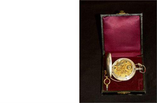 Jolie petite montre de poche en argent avec seconde au centre, faite pour la Chine, cadran émail blanc avec chiffres romains, aiguilles en acier bleui, mouvement squelette doré et gravé. 1860, avec coffret