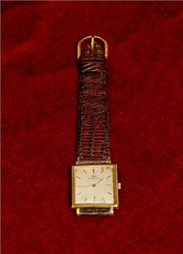 Jolie montre-bracelet carrée extra-plate en or rose 18 cts, signée MOVADO, env. 1950