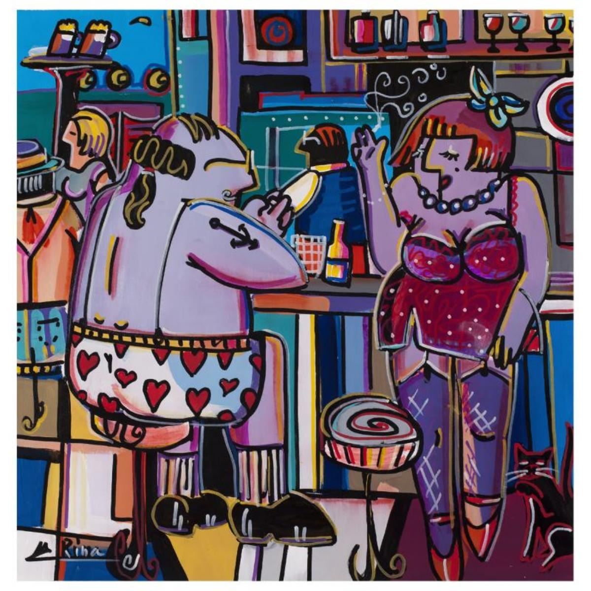 Nice to Meet You by Maimon Original. "Nice to Meet You" is an original acrylic painting on canvas by Rina Maimon, hand signed by the artist and includes a certificate of authenticity. Measures approximately 24" x 24"