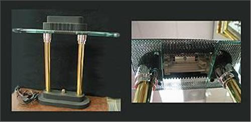 Nice well made halogen desk lamp - works. The diffuser is glass.