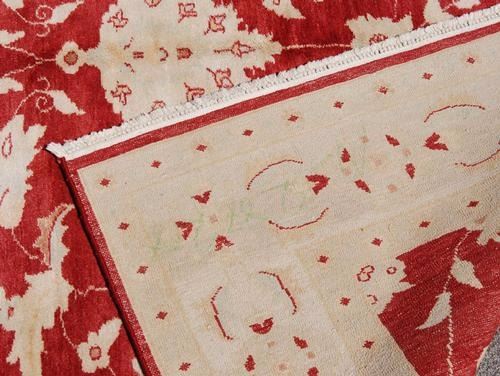 Nicely contrasted Egyptian rug. Size 6.9 x 9.4 feet, made of fine quality lamb's wool pile on cotton foundation, all natural vegetable dye, this beautiful rug incorporates a set of large floral patterns on a red background. With very rare and nicely defined colors, and encapsulated by an intricately done floral border. Hand woven in Egypt.
