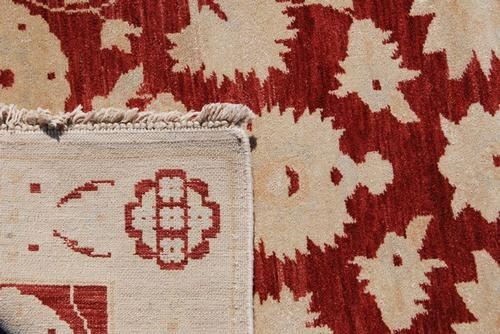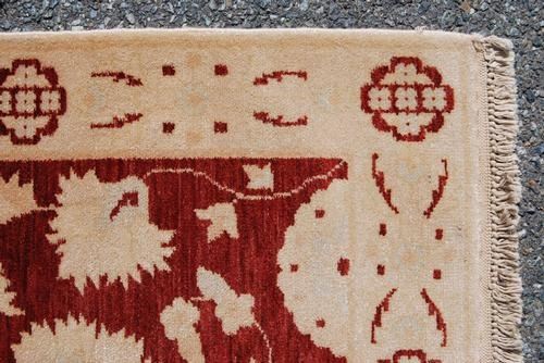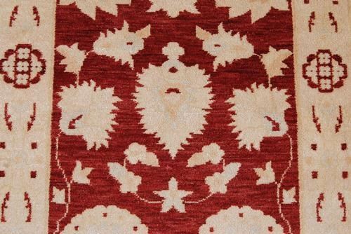 Nicely contrasted Egyptian runner. Size 8.5 x 2.7 feet, made of fine quality lamb's wool pile on cotton foundation, all natural vegetable dye, this beautiful rug incorporates a set of large floral patterns on a red background. With very rare and nicely defined colors, and encapsulated by an intricately done floral border. Hand woven in Egypt.
