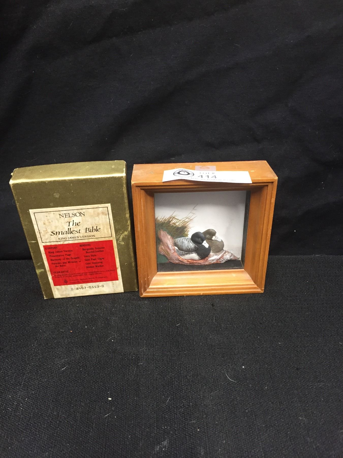 Nicely Framed Handpainted Ducks. 3-D Art Plus a Nelson The Smallest King James Version Bible in Box.