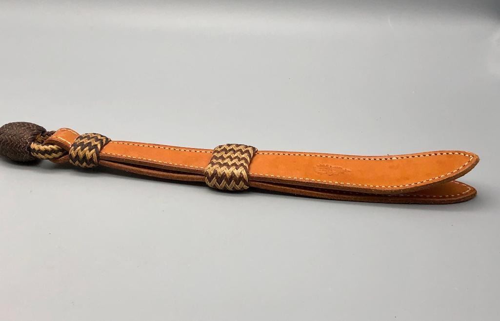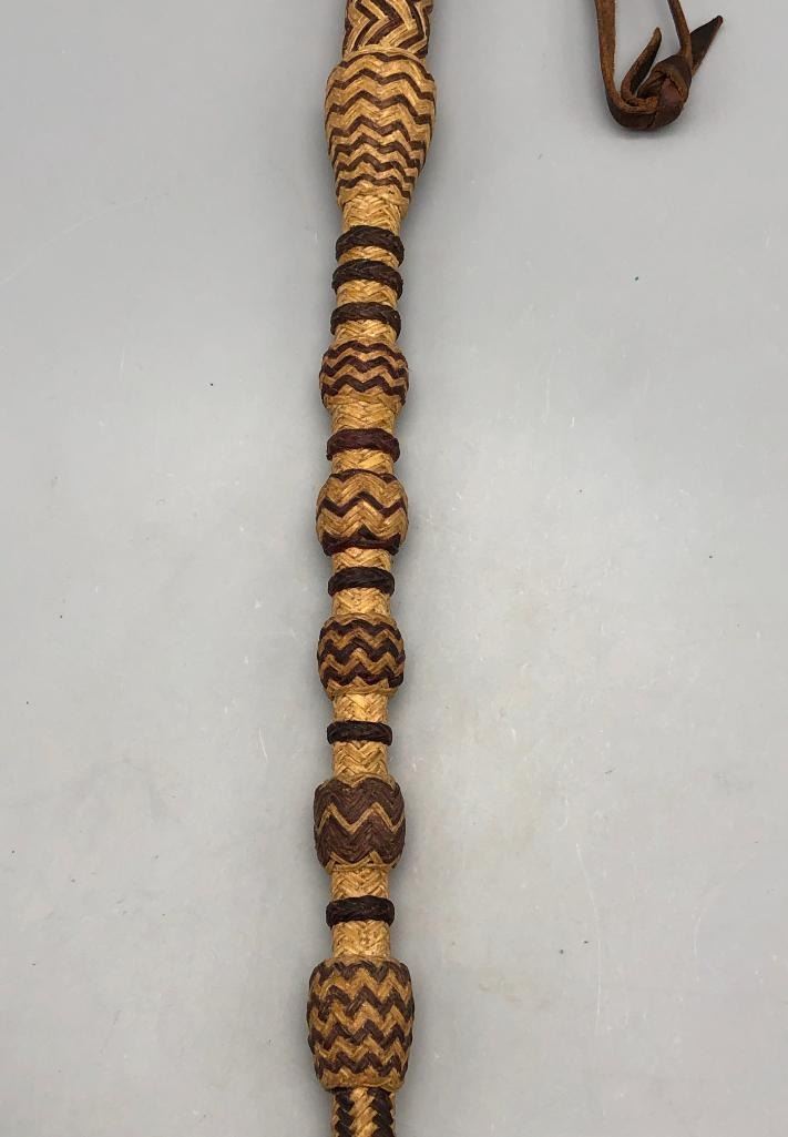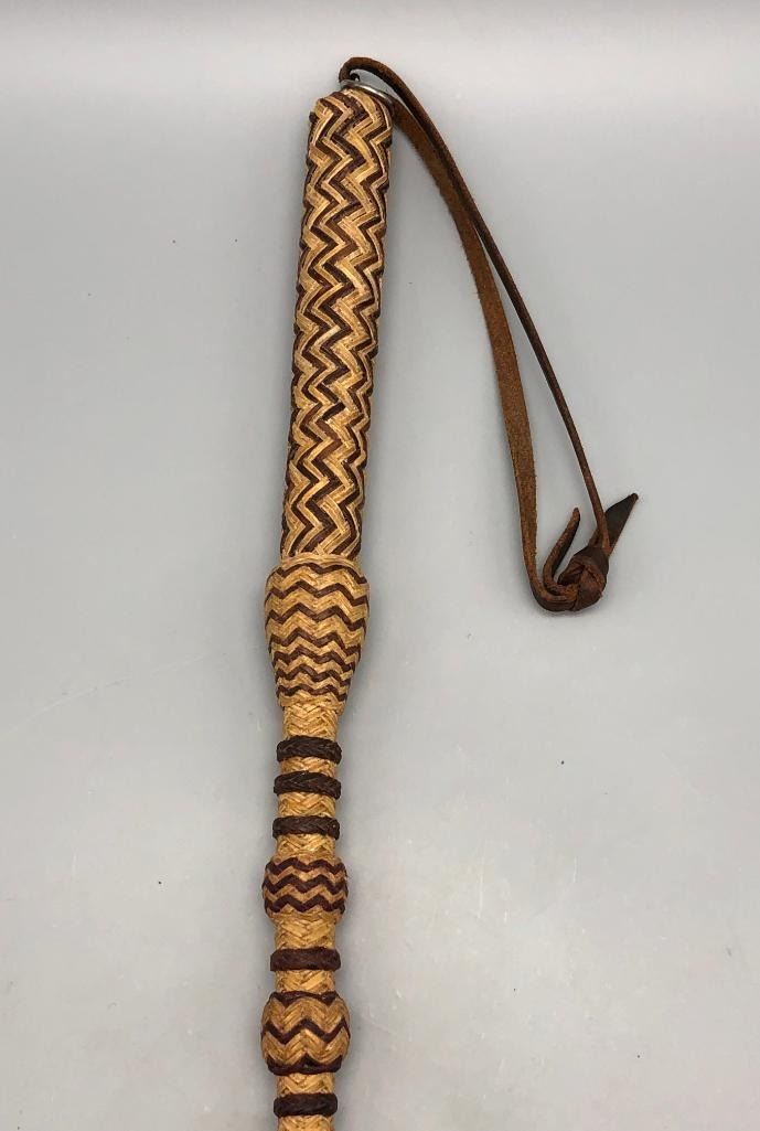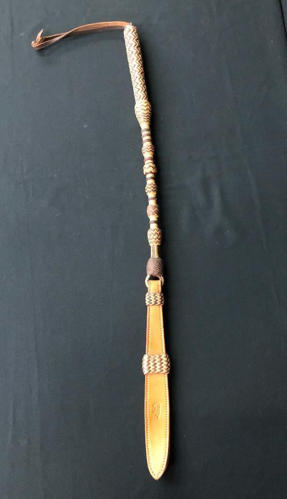 For sale in this lot is a nice handmade, braided rawhide quirt featuring fine details, a leather popper and leather strap. MAKER: Stamped HR inside a flower. APPROX AGE: Fairly contemporary. SIZE: 30 inches long. CONDITION: Good for its age, normal wear expected. Please look closely at the pictures as they are an important part of our description and are hereby incorporated into the description, specifically with regards to condition. SHIPPING: There will be a $8 handling / packaging fee for shipping this lot. The actual cost of postage will be added on top of that. BUY IT NOW: If you would like to buy this item now, without waiting for the auction day to bid on it, we do offer this option (which is available up to 48 hours before the actual auction starts). The “Buy it Now†price is the high estimate of this lot (plus applicable fees and the Buyer's premium is discounted to 10% when using the Buy it Now option). If you would like to exercise this option, you must contact us by email (or phone as long as you talk to someone live). Reference this lot number and your intention to "Buy it Now."