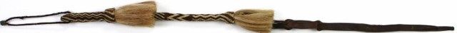hitched horsehair in natural brown and off white, its original braided wrist strap intact and leather popper. Classic cowboy accessory in fine condition, 36" long. Est. 250-400