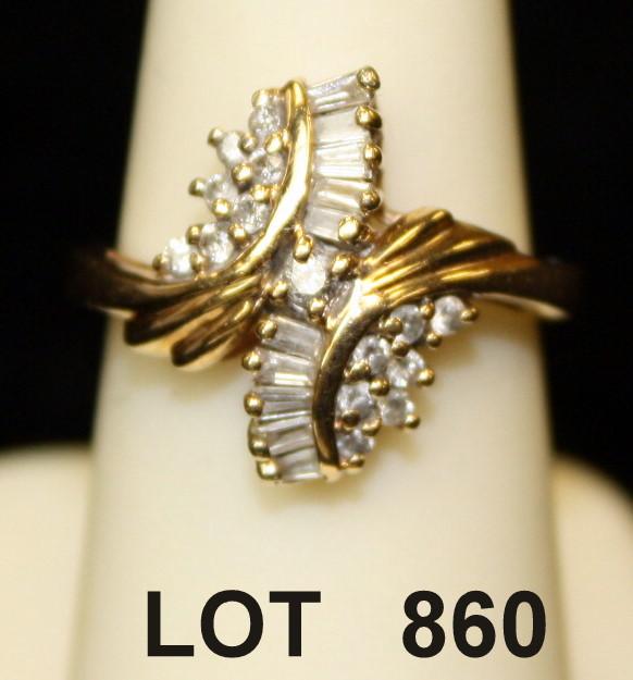 Nicely made diamond ring consisting of 10 baguette diamonds and 14 round in 14kt gold (signed), 1/2 to 3/4ct. Est: $100 - $300