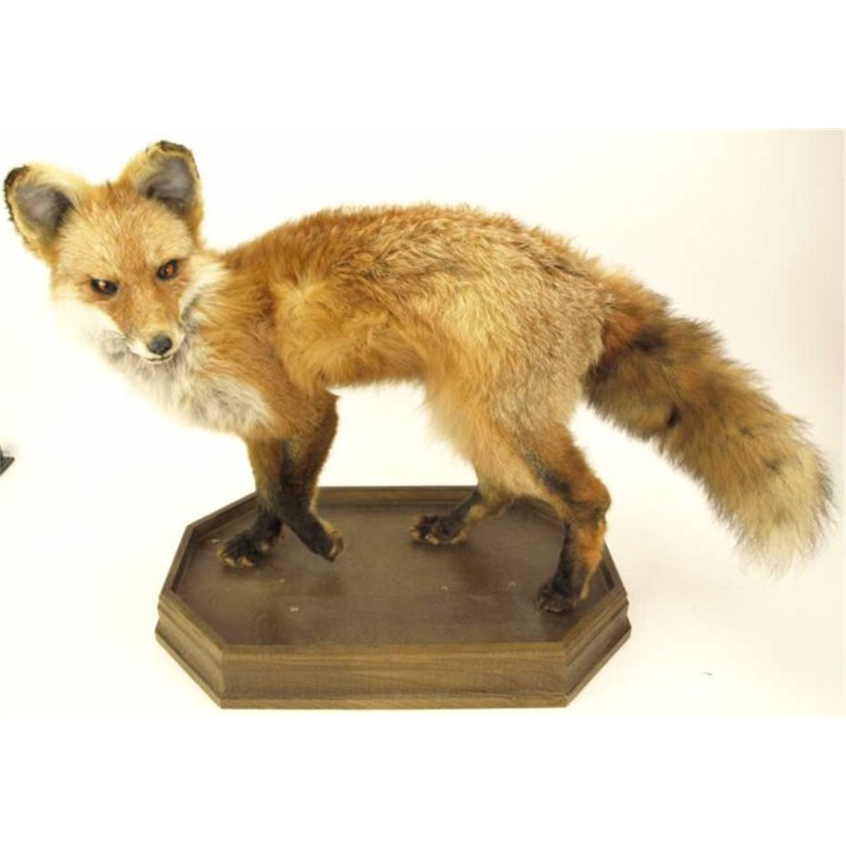 Nicely mounted Red Fox on walnut base 27" X 20" tall.