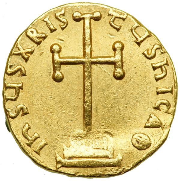Nicephorus I, 802-811. Gold Solidus (4.44 g) minted at Constantinople. Bust facing of Nicephorus I holding cross potent and akakia. Reverse: Cross potent on three steps. D.O. 1a; S.1603. Very rare. On a rather small diameter flan; possible tooling on forehead of emperor and associated lower portion of reverse. Choice Very Fine. .