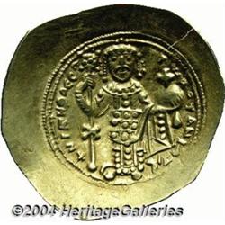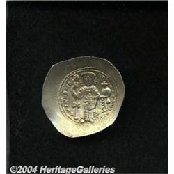 <B>Nicephorus III.</B></I> 1078-1081. EL histamenon nomisma (29 mm, 4.33 g). Constantinople. Christ seated facing on throne without back, raising right hand in benediction and holding Gospels / Nicephorus standing facing, holding labarum with X on shaft and globus cruciger. DOC 3b; SB 1881. Good VF. <BR><I>From the Geneva Collection.</B></I> <BR><BR><B>Important notice:</B> Heritage usually auctions material at the rate of 200-250 lots per hour. On some occasions eBay Live bid software or the Internet may not be able to keep up with the pace of the auction. We recommend placing a realistic absentee bid now as insurance to avoid disappointment. Occasionally the auctioneer may eliminate or reject an eBay Live bid, and the auctioneer may also reopen a lot after the close of the eBay live bidding (usually because we missed an audience bid), and may reject your bid even if it shows you as the winning bidder. By bidding via eBay Live, you agree that Heritage may award the lot to another bidder at its sole discretion under the circumstances described above or any other reasonable circumstances. Since eBay bids are not shown to us until we open the lot on the floor, we treat those bids just like floor bids. In most cases the floor responds before the eBay bid is presented to us, due to Internet lag time, so for consistency we have made it a policy that floor bids are always considered first over tie eBay live bids. Also please note that all Heritage lots purchased through eBay Live carry a 20% Buyer's Premium. Please make sure you read the Terms and Conditions before you bid.