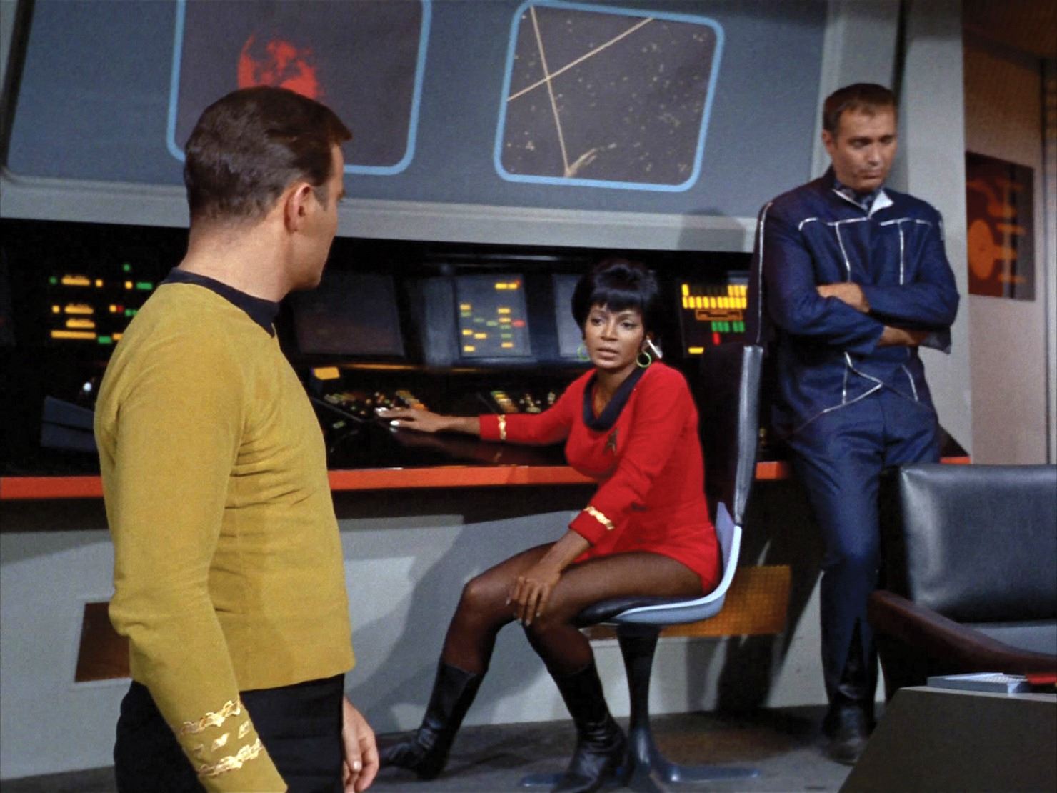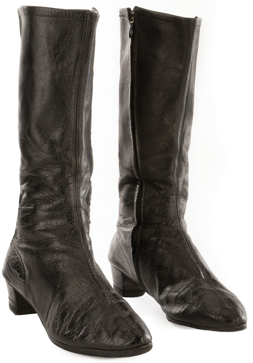 48. Nichelle Nichols "Uhura" boots from Star Trek: The Original Series. (Paramount TV, 1966-1969) Vintage original black leather women's calf-high boots. With chunky heels and zipper side closures. Handwritten in the interior of the right boot, " N. Nichols" and in the left, "Nichelle Nichols". Worn by the actress in multiple episodes of Star Trek: The Original Series. Exhibiting minor age and production wear. In vintage very good to fine condition. Provenance: Butterfield & Butterfield, July 1998. Exhibited: California State Fair, August 1998. $3,000 - $5,000