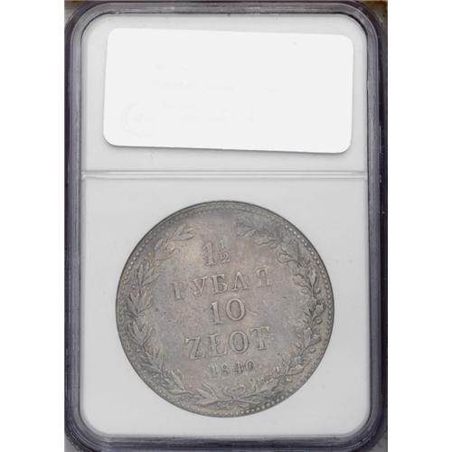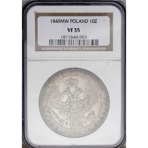 <B>Nicholas I. 10 Zlotych-1-1/2 Roubles 1840-MW, </B></I>Bit-1136, Uzd-4155, Kop. 9456 R4, KM-C134, VF35 NGC. Scarce, with a mintage of only 2,747 pieces.