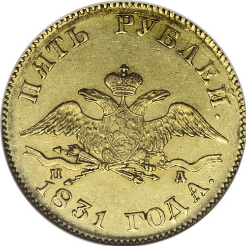 Nicholas I. Gold 5 Roubles 1831 C??-??, wings down