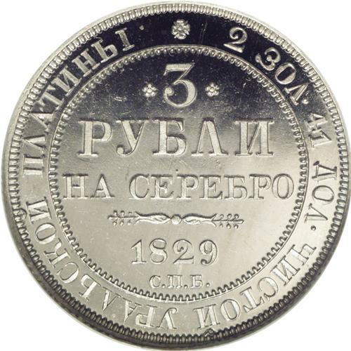 Nicholas I. Platinum 3 Roubles 1829 C??, F-160, Bit-74,