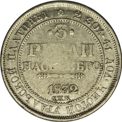 Nicholas I. Platinum 3 Roubles 1832 C??, F-160, Bit-78,