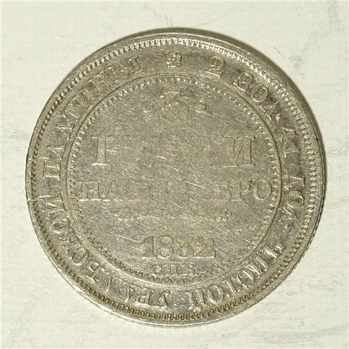 <B>Nicholas I. Platinum 3 Roubles 1832 C??,</B></I> F-160, Bit-78, F-VF with a weakly struck reverse.<BR><BR><b>Shipping:</b> Coin/Currency (<a target="_blank" href="http://www.heritageauctions.com/common/shipping.php">view shipping information</a>)