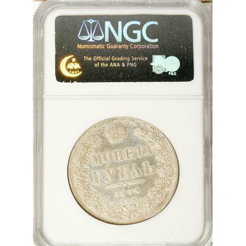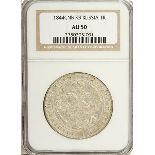 <B>Nicholas I. Rouble 1844 C??-??,</B></I> AU50 NGC. Well struck with scattered light russet toning.<BR><BR><b>Shipping:</b> Coin/Currency (<a target="_blank" href="http://www.heritageauctions.com/common/shipping.php">view shipping information</a>)
