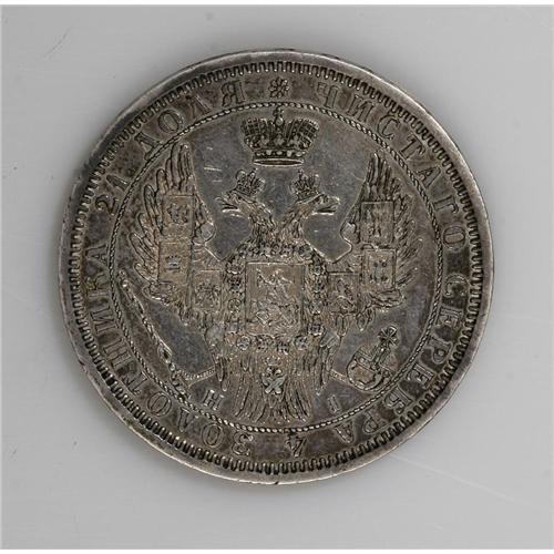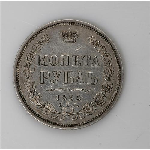 <B>Nicholas I. Rouble 1855 C??-??,</B></I> Bit-235, Uzd-1720, Julian-1133, XF with moderate abrasions and mottled gray patina.<BR><BR><b>Shipping:</b> Coin/Currency (<a target="_blank" href="http://www.heritageauctions.com/common/shipping.php">view shipping information</a>)