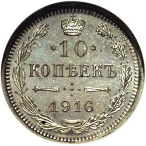 Nicholas II. 10 Kopecks 1916 C??-BC, Bit-169, Proof 65