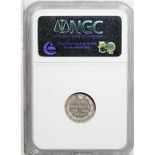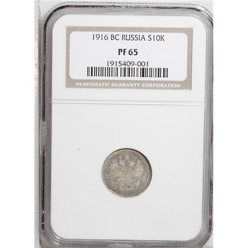 <B>Nicholas II. 10 Kopecks 1916 C??-BC,</B></I> Bit-169, Proof 65 NGC. Nicely toned and deeply mirrored fields with a few minor spots.<BR><BR><b>Shipping:</b> Coin/Currency (<a target="_blank" href="http://www.heritageauctions.com/common/shipping.php">view shipping information</a>)
