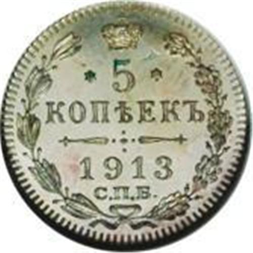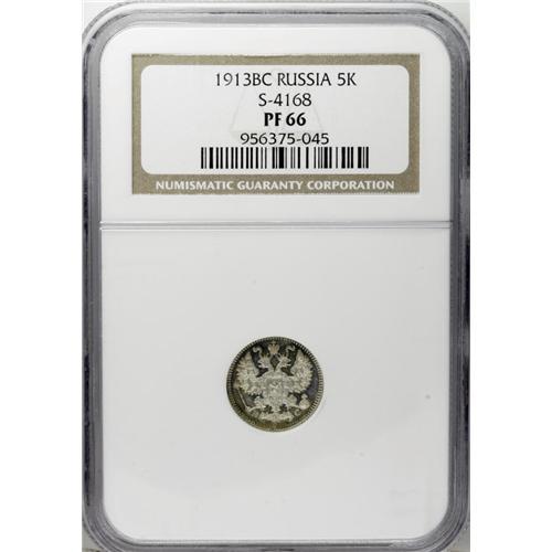 Nicholas II. 5 Kopecks 1913 C??-BC, Bit-190, Proof 66 N