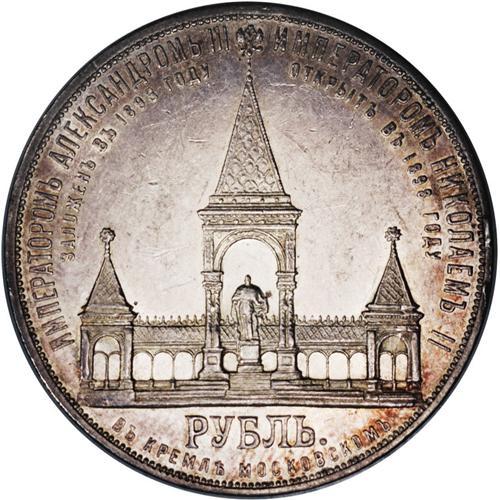 <B>Nicholas II. Alexander II Commemorative Rouble 1898,</B></I> Bit-323, Uzd-4198, lustrous AU with two small reverse rim bumps at 3 o'clock.<BR><I>From the St. Petersburg Collection.</B></I>