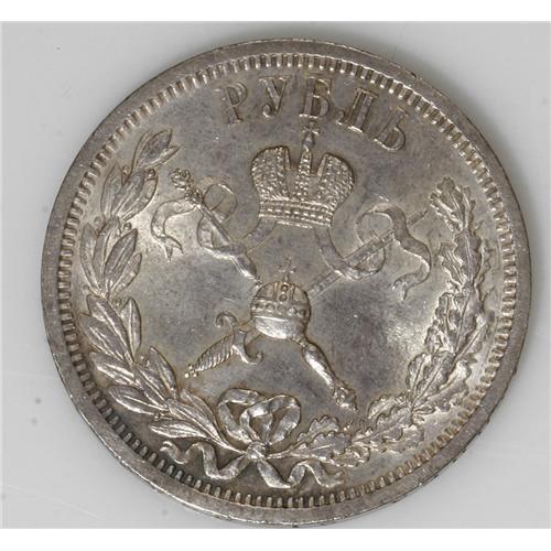 <B>Nicholas II Coronation Rouble 1896,</B></I> Bit-322, AU. Full luster with light golden toning.