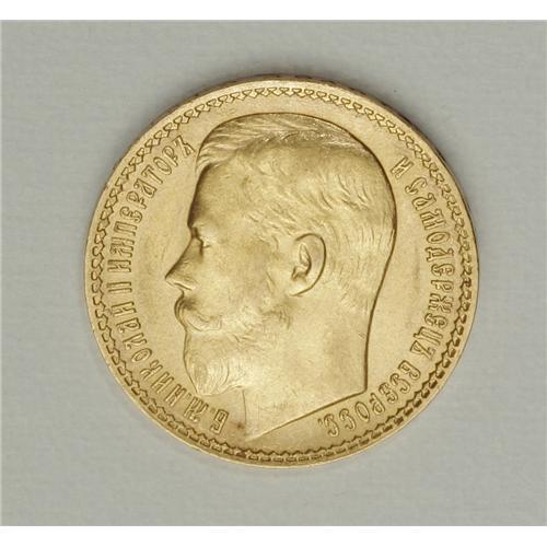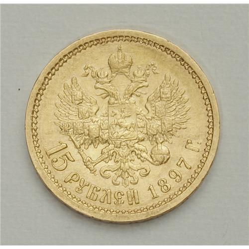 <B>Nicholas II. Gold 15 Roubles 1897 A?,</B></I> F-177, Bit-2, AU with nice strike and luster.<BR><BR><b>Shipping:</b> Coin/Currency (<a target="_blank" href="http://www.heritageauctions.com/common/shipping.php">view shipping information</a>)