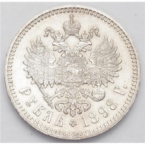 <B>Nicholas II Rouble 1898 * (Paris),</B></I> Bit-195, Uzd-2089, Julian-1202, light golden toned UNC with a few small marks.<BR><I>From the St. Petersburg Collection.</B></I>