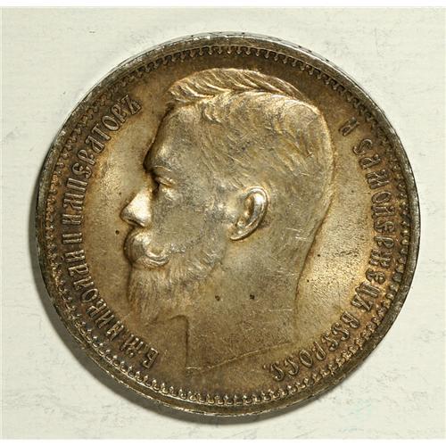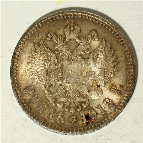 <B>Nicholas II. Rouble 1912 ??,</B></I> Bit-66, toned UNC with specks of dark incrustation on the reverse.<BR><BR><b>Shipping:</b> Coin/Currency (<a target="_blank" href="http://www.heritageauctions.com/common/shipping.php">view shipping information</a>)