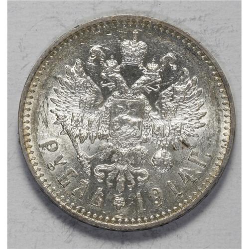 <B>Nicholas II. Rouble 1914 BC,</B></I> Bit-69, UNC with a noticeable large contact mark on the obverse and moderate abrasions on both sides.<BR><I>From the Monedas Oro Collection</B></I><BR><BR><b>Shipping:</b> Coin/Currency (<a target="_blank" href="http://www.heritageauctions.com/common/shipping.php">view shipping information</a>)