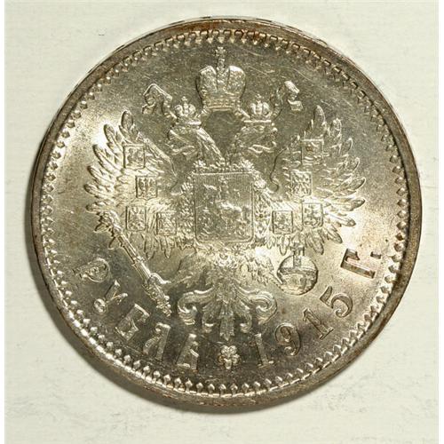 <B>Nicholas II. Rouble 1915 BC,</B></I> Bit-70, Choice AU. Full luster with the slightest touch of rubbing on the highpoints.<BR><BR><b>Shipping:</b> Coin/Currency (<a target="_blank" href="http://www.heritageauctions.com/common/shipping.php">view shipping information</a>)
