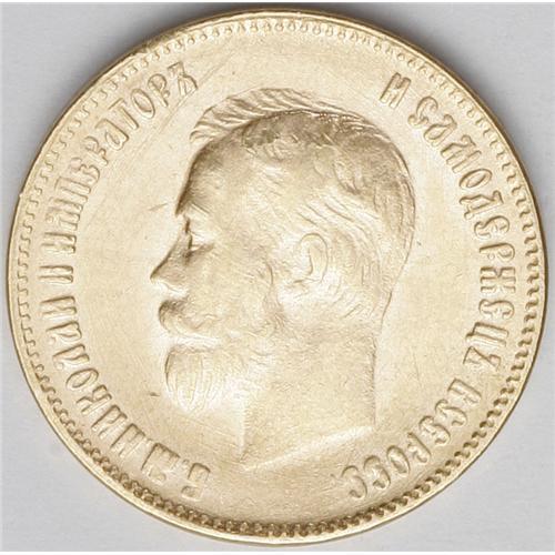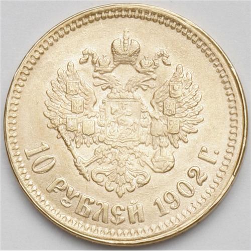 <B>Nicholas II. gold 10 Roubles 1902-AP,</B></I> Bit-10, Uzd-343, AU with light obverse abrasions.