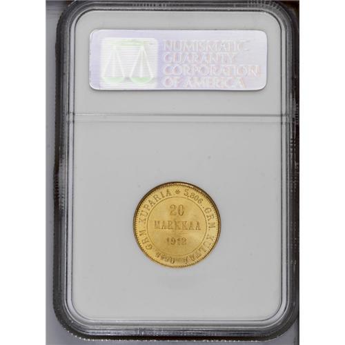 Nicholas II gold 20 Markkaa 1912-S, KM9.2, MS66 NGC.