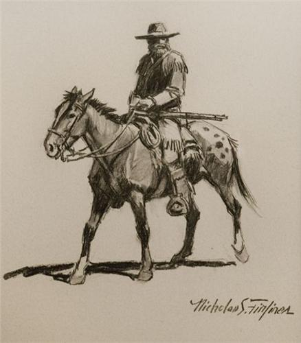 Nicholas S. Firfires (1917-1990). CAA. "Mountain Man". 13" x 9 ½”. Charcoal Drawing. (est $800-1,000).