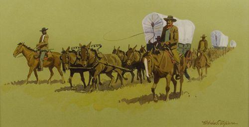Nicholas S. Firfires (1917-1990). CAA. "The Freight Wagons". 11" x 21". Gouache. Pristine condition. (est $1,200-1,500).