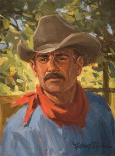 Nicholas S. Firfires (1919-1970), CAA. Ranch Hand. 16" x 12" oil on canvas. Signed lower right. (est $2,000-3,000)