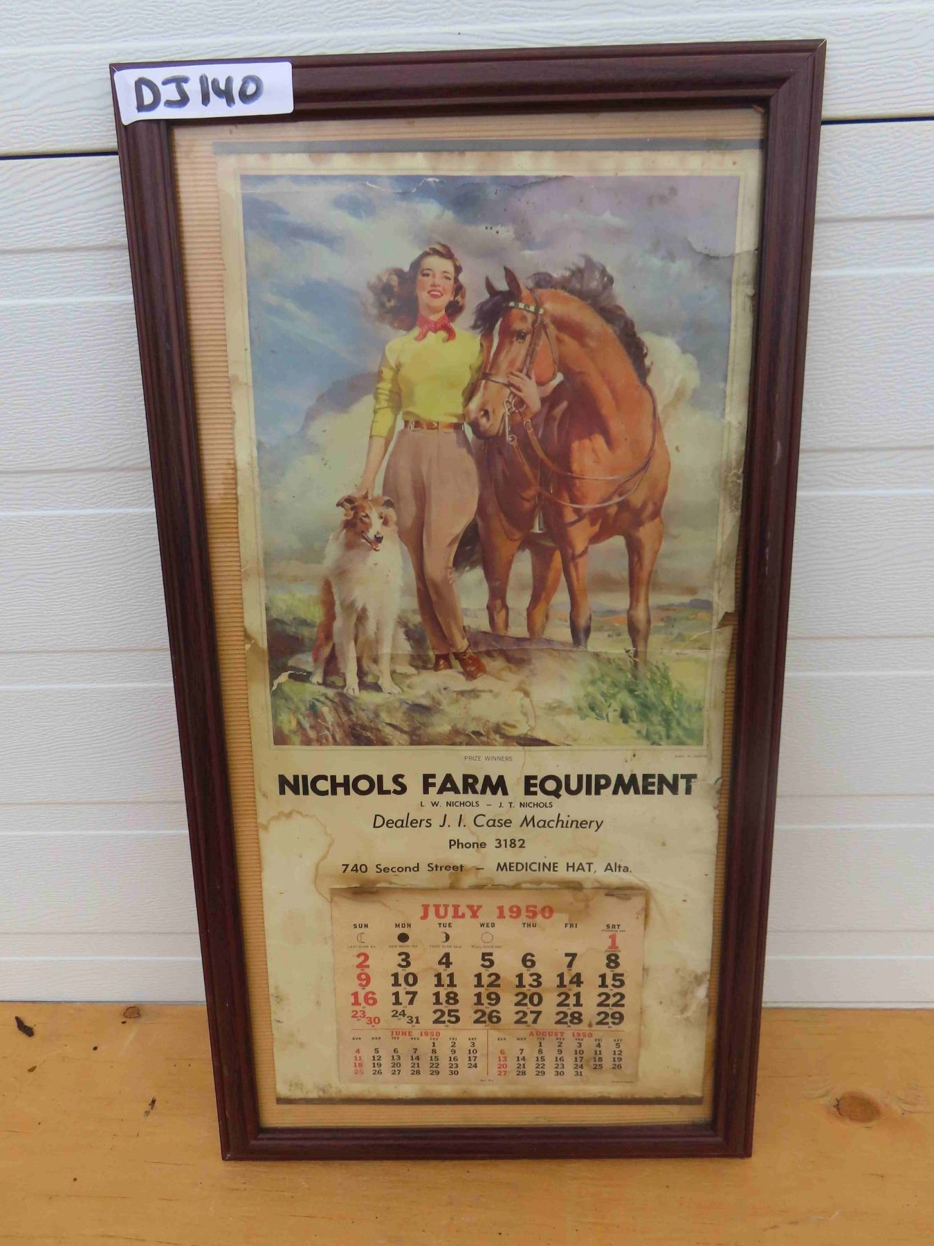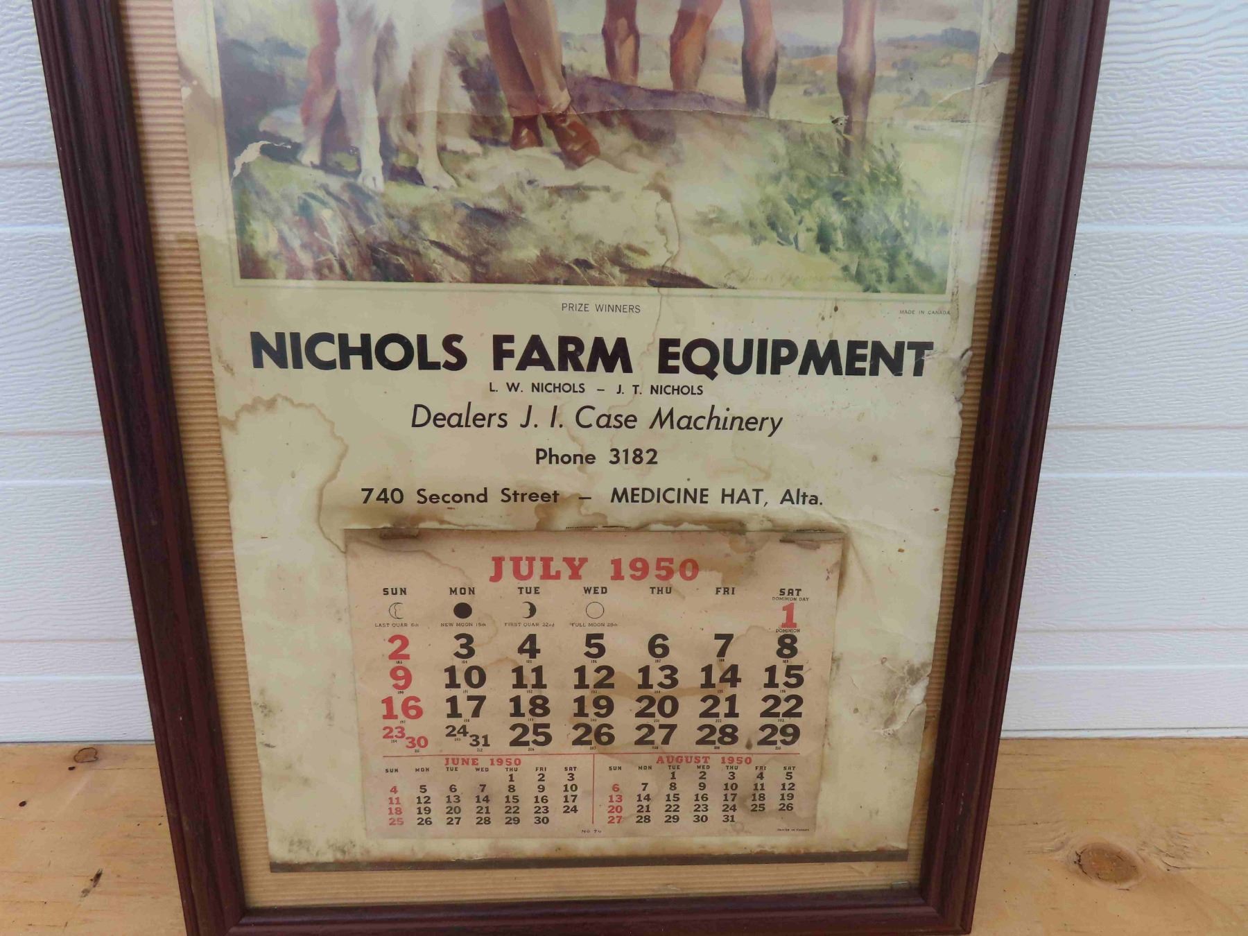 Nichols Farm Equipment J.I. Case Dealer 1950 Framed Calender July and Up 14'' x 26''