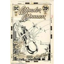 Nick Cardy - Original Cover Art for Wonder Woman #205 (DC, 1972). BOMBastic! Wonder Woman in all her glory! This cover captures the essence of  the comic book genre: beautiful heroine, dire circumstances, and New York in peril. There has been, in recent times, a rediscovery of the art of Nick Cardy. He is currently being lauded as one of the great artists of the 1970s. This cover is in exceptional condition with very minor white-out. The art measures 10"x 15".  Important notice: We expect to be auctioning lots at the rate of 200-250 per hour. Sometimes eBay Premier live bid software cannot keep up with that pace, so we strongly recommend that you place a realistic proxy bid now as insurance to avoid disappointment. Also please note that all Heritage/CAA lots purchased through eBay Premier carry a 20% Buyer's Premium.