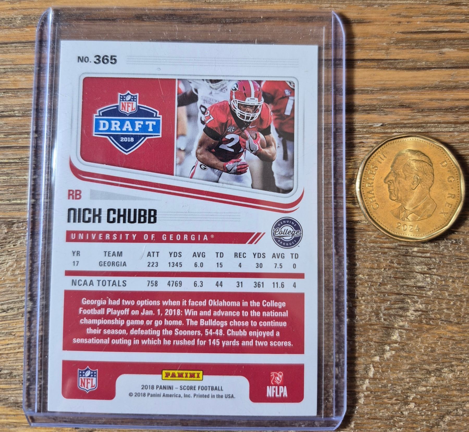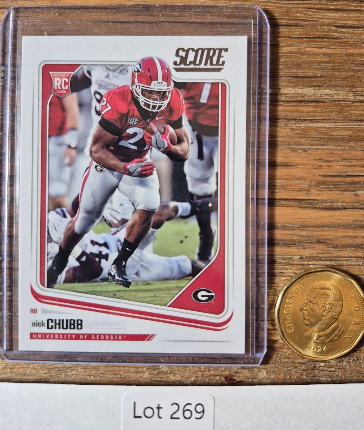 Single 2018 Score rookie card featuring Nick Chubb from his college days at Georgia before joining the Browns.