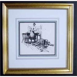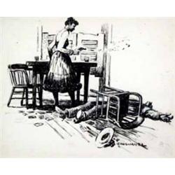 Nick Eggenhofer (1897-1985) (New Jersey) Drybrush Drawing. "Never Cheat a Woman." 7.5" x 9.5". signed lower right. Est $1,500 - $2,000.