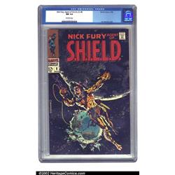 Nick Fury, Agent of SHIELD #6 (Marvel, 1968) CGC NM 9.4 Off-white pages. Jim Steranko's exhilarating art on this title is probably his best-known comic work. Rightfully so, as this superlative copy attests so forcefully. Only a quarter-grade separates this prize from the highest-graded copy of issue #6 that CGC has seen to date. Overstreet 2002 NM 9.4 value = $40. Important notice: We expect to be auctioning lots at the rate of 200-250 per hour. Sometimes eBay Premier live bid software cannot keep up with that pace, so we strongly recommend that you place a realistic proxy bid now as insurance to avoid disappointment. Also please note that all Heritage/CAA lots purchased through eBay Premier carry a 20% Buyer's Premium. Please make sure you read the Terms and Conditions.
