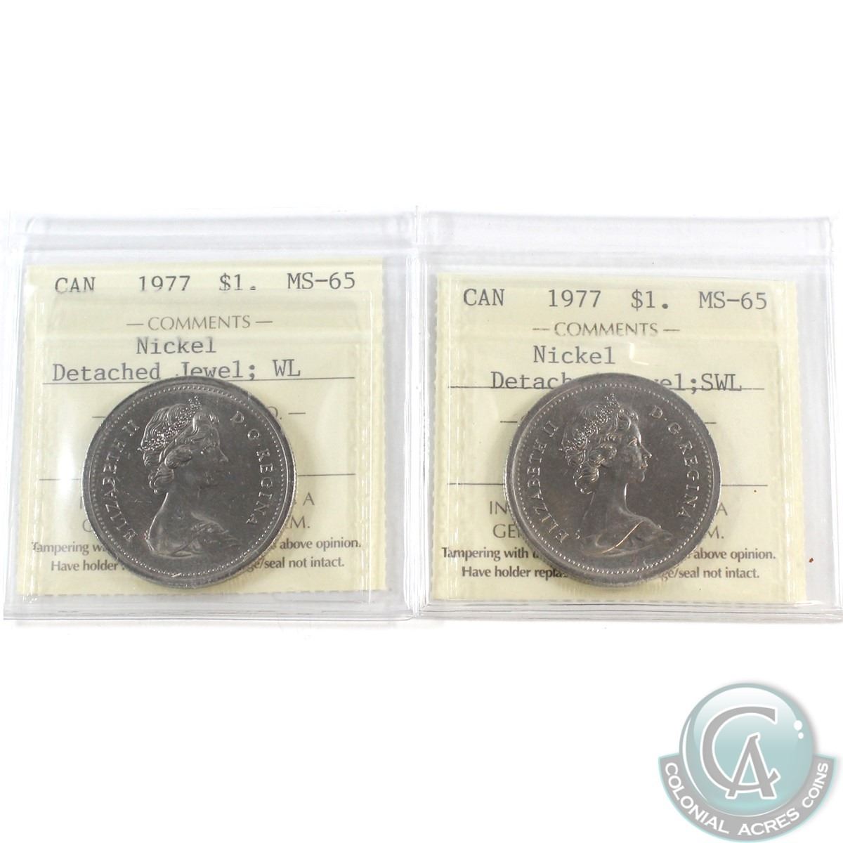 Nickel $1 1977 Detached Jewel SWL & Detached Jewel WL ICCS Certified MS-65. 2pcs