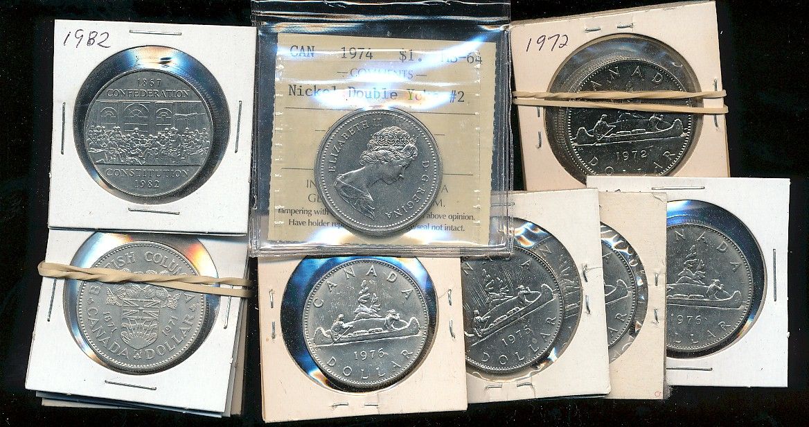 Nickel Dollar Lot; includes 1968 to 1975 issues with many duplicates & 1974 Dbl Yk #2 ICCS MS64. 68 pcs in all AU to UNC.