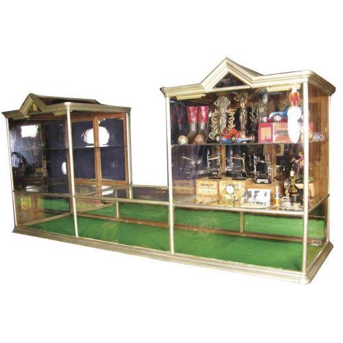 Nickel Double Cathedral Showcase. Small crack on one front glass panel otherwise excellent condition. Retro fitted for light. Product Not Included. 95 1/2 X 43 1/2 X 25 3/4 inches.